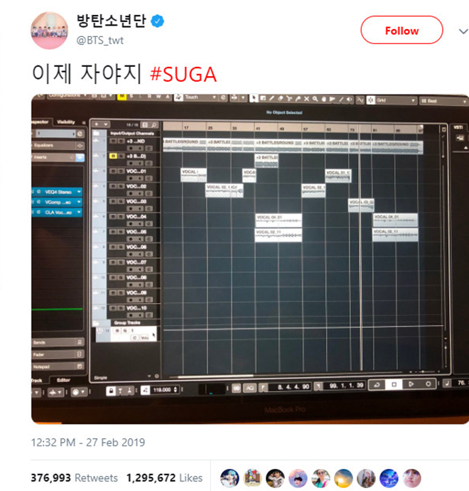 Suga đăng tải bức ảnh này hồi tháng 2