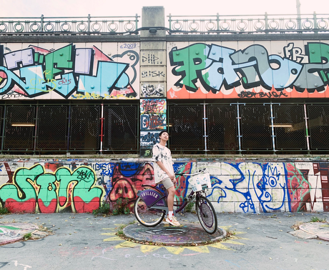Hình ảnh Jin (BTS) đi chọn mua xe được một fan ghi lại